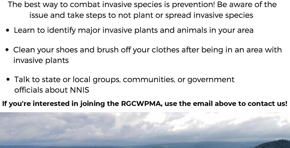 The Rivers and Gorges CWPMA is a partnership between federal, state, and local agencies, community associations, non-profit organizations, and private land owners aimed at coordinating efforts and programs for addressing the threat of invasive species. CWPMA members are dedicated to invasive species management.